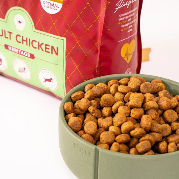 Samenstelling:Kip (gedehydreerd, 25%), witte rijst, maïs, dierlijk vet (kip, 6%), gehydroliseerde kippeneiwitten (4%), gedroogde bietenpulp, lijnzaad, mineralen, gedroogde cichorei (natuurlijke bron van FOS en inuline), gedroogde biergist, Johannesbroodpitmeel, lignocellulose, gedroogde hele eieren, zalmolie, gistextract (een natuurlijke bron van MOS en bèta-glucanen), Yucca schidigera, glucosamine hydrochloride, chondroïtinesulfaat