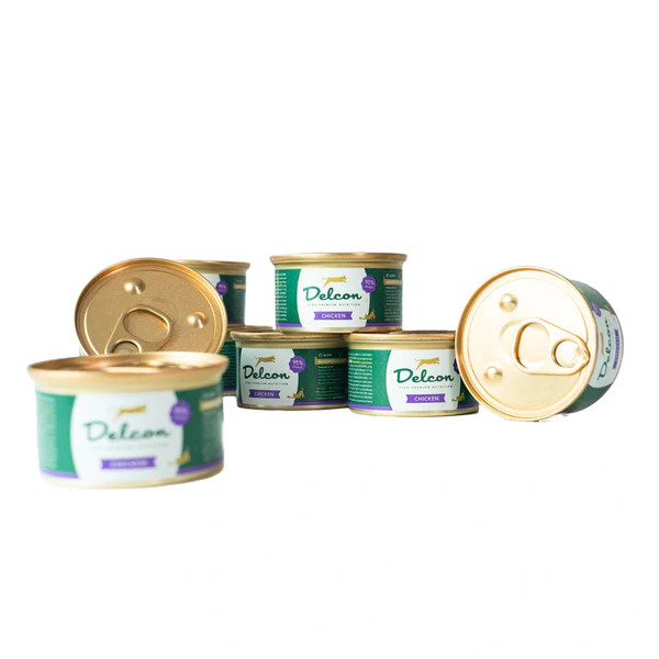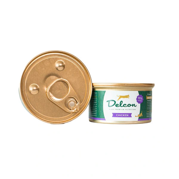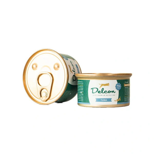 Delcon Natte kattenvoeding paté, telkens bestaande uit 95% van 1 soort vlees of vis (kip - lam - tonijn), is speciaal ontwikkeld voor volwassen katten.