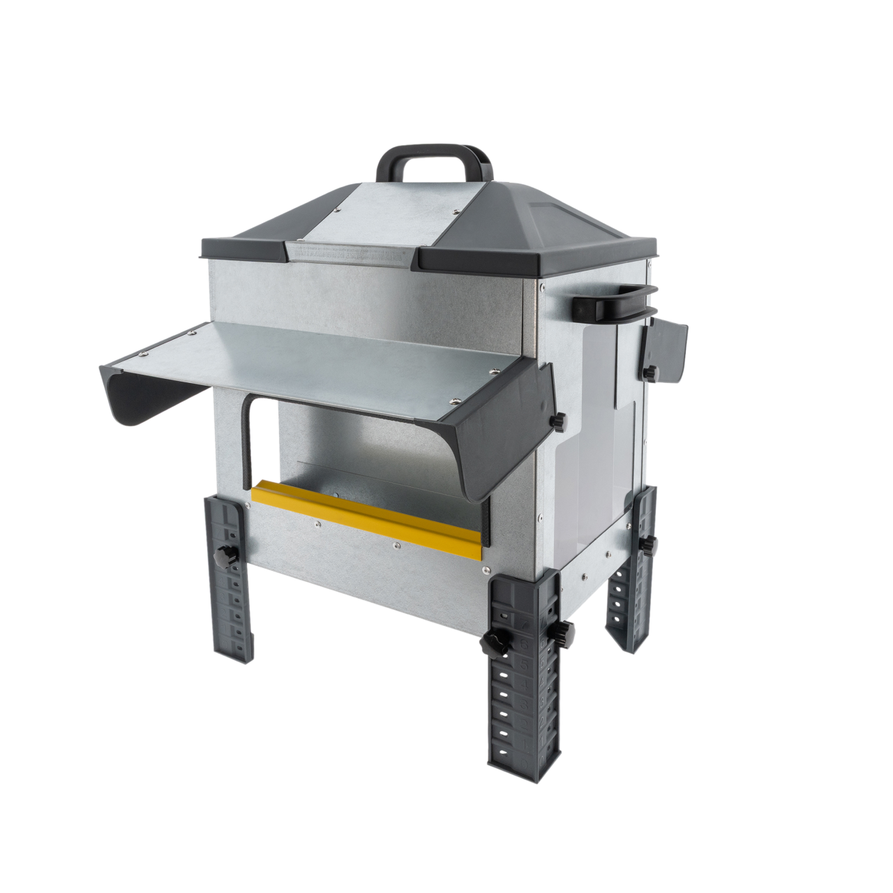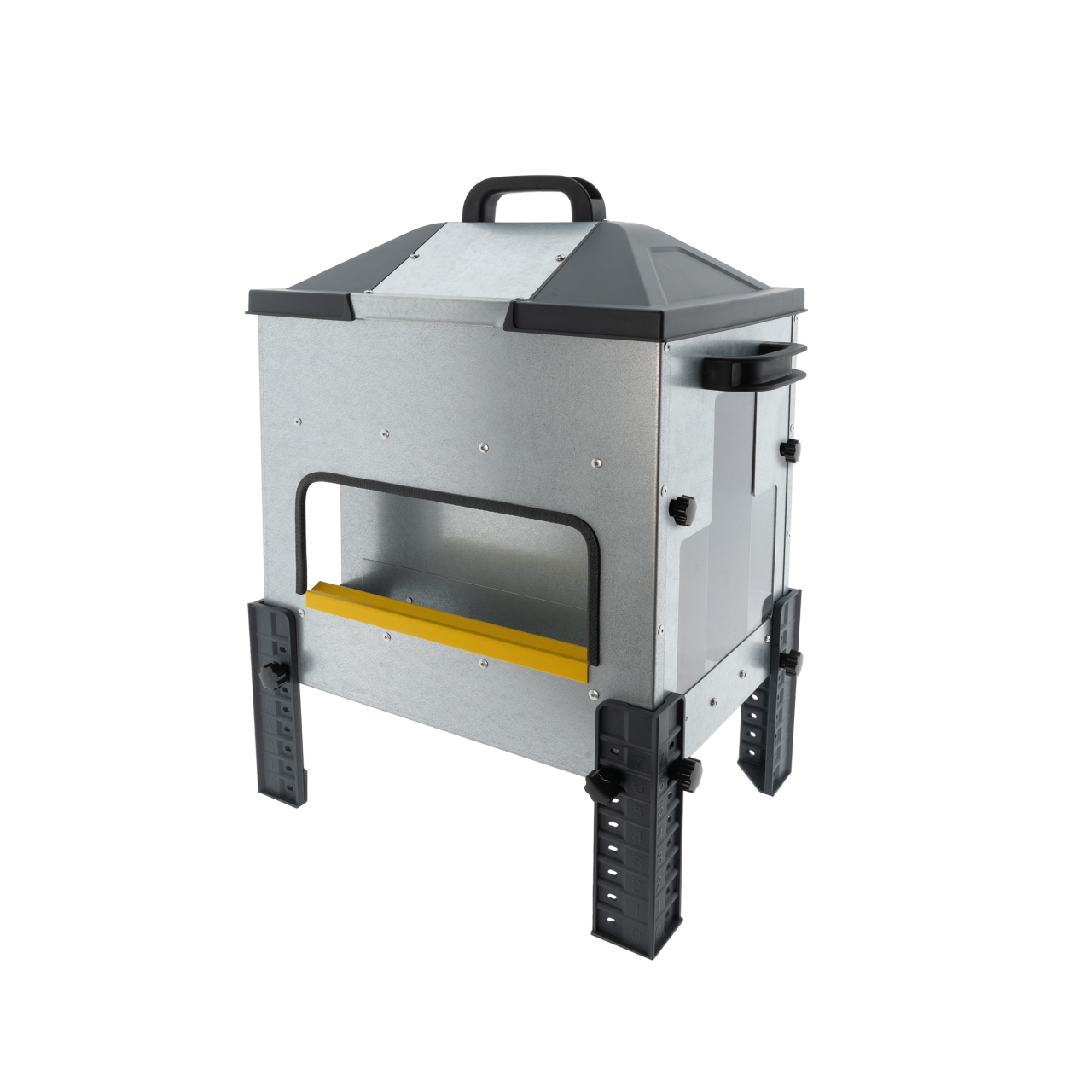 Direct zicht op het voerpeil dankzij transparante, UV-bestendige zijpanelen
