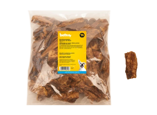 Samenstelling: 100% gedroogde runderlongen. Analytische bestanddelen: ruw eiwit 74,2%, ruw vet 9,8%, ruwe as 4,9%, ruwe celstof 3,9%, vocht 9,5%.