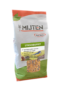 Strooibuffet van Mijten is een rijk en gevarieerd strooivoer, samengesteld voor een brede diversiteit aan wilde tuinvogels. Deze uitgebalanceerde mengeling bevat stukjes maïs, zonnebloempitten en tal van fijne zaden, ideaal voor zowel grote als kleine vogelsoorten in jouw tuin.