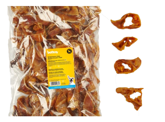 Samenstelling: 100% gedroogde varkensoren. Analytische bestanddelen: ruw eiwit 57,8%, ruw vet 32%, ruwe as 1,8%, cellulose 2,1%, vocht 8,7%.