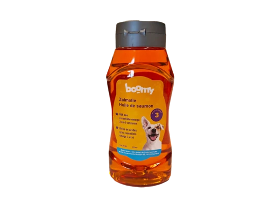 Samenstelling: 100% zalmolie. Omega 3 vetzuren 16,7%, omega 6 vetzuren 18,3%, EPA 4,1%, DHA 5,6%. Analytische bestanddelen: ruw vet 98%, ruw eiwit 1,1%, vocht >1%, ruwe celstof 0,1%, ruwe celstof <0,3%. Toevoegingsmiddelen: antioxidant 1b306i: tocoferol-extracten van plantaardige olie.